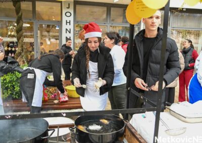 Osim slatkih delicija, trgom se širio i neodoljiv miris fritula i bakalara, neizostavnih dijelova dalmatinske blagdanske trpeze. Uz hladno prosinačko jutro, posjetitelji su se rado grijali uz kuhani čaj i vino, uživajući u druženju i pravoj blagdanskoj atmosferi.